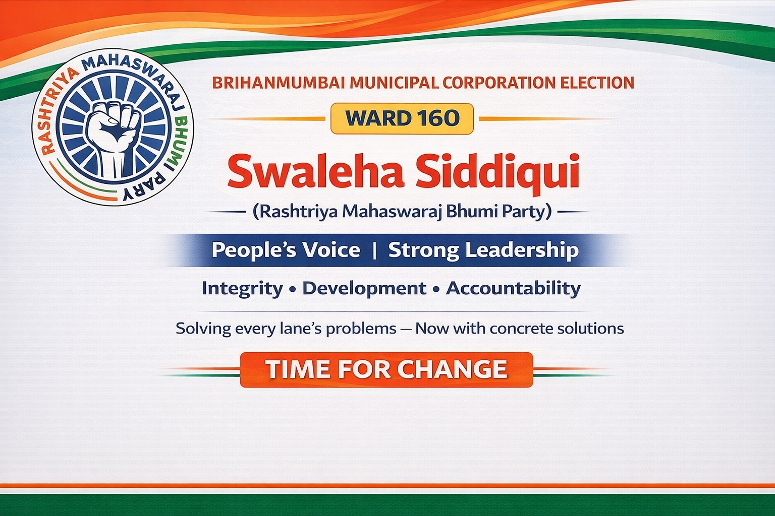 BMC वार्ड 160 से चुनाव लड़ने के लिए जनता ने माननीय राष्ट्रीय सचिव स्वालेहा सिद्दीकी जी से किया औपचारिक आग्रह स्थानीय इलाकों में जनसमर्थन तेज, बदलाव की उम्मीद मजबूत