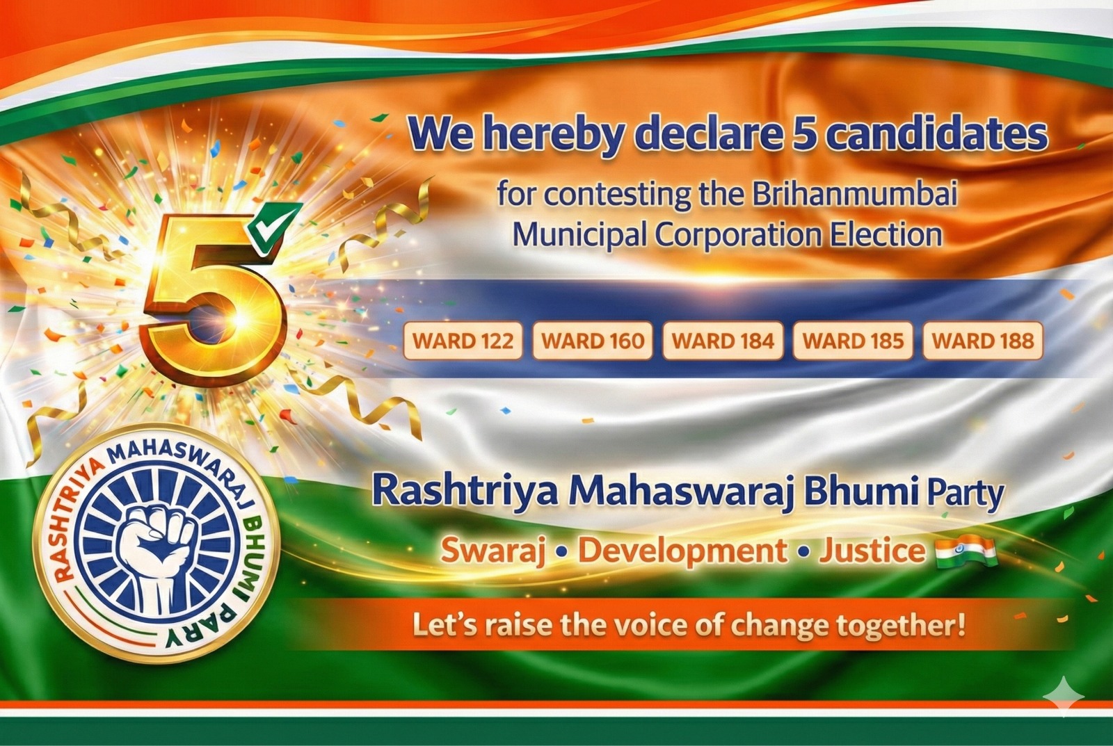 मुंबई बीएमसी चुनाव: महास्वराज पार्टी 5 वार्डों में उतरी मैदान में, जनता के समर्थन से उम्मीदवार घोषित