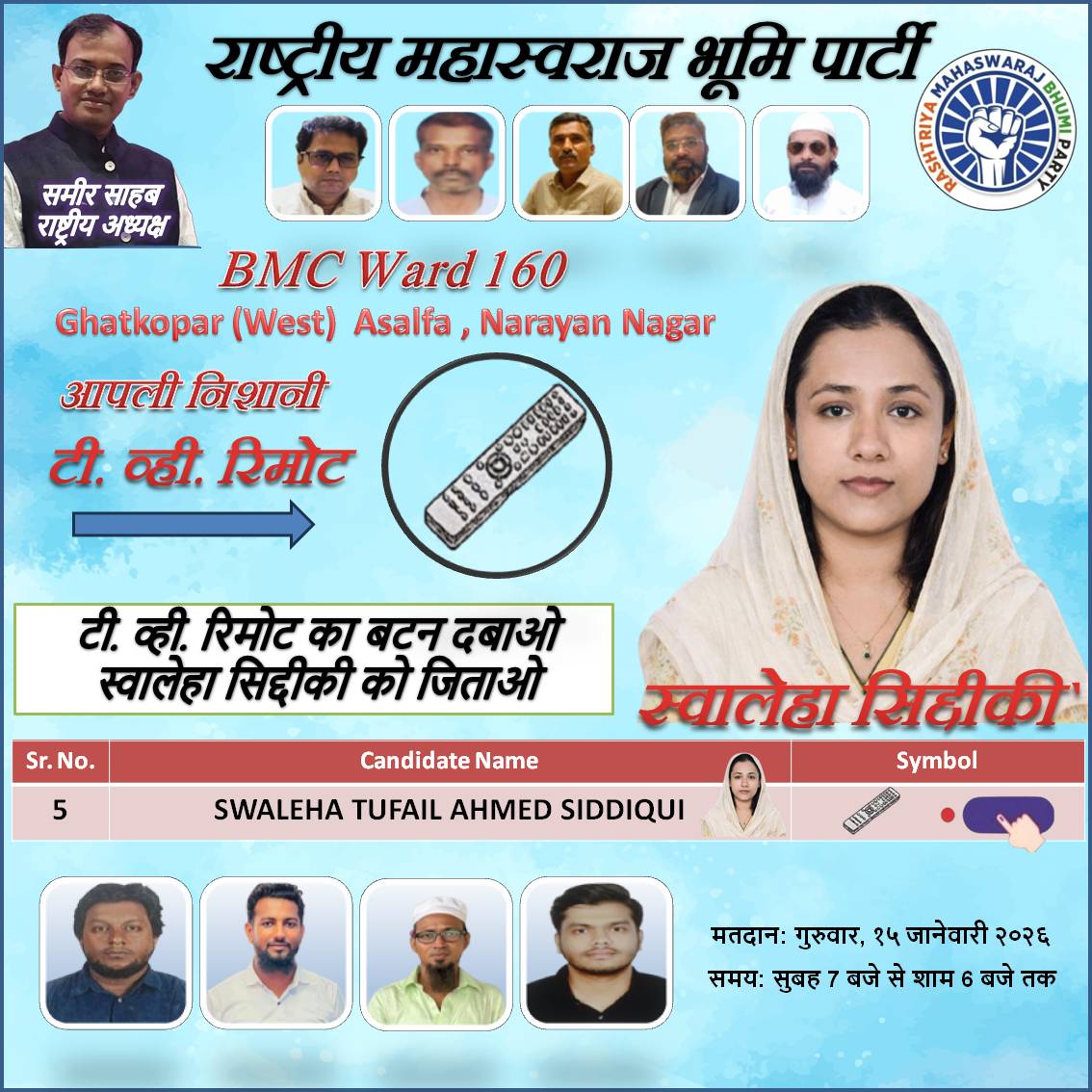वार्ड 160 से महास्वराज पार्टी की प्रत्याशी स्वलेहा सिद्दीकी—नामांकन मंज़ूर, 3 जनवरी को मिलेगा चुनाव चिन्ह