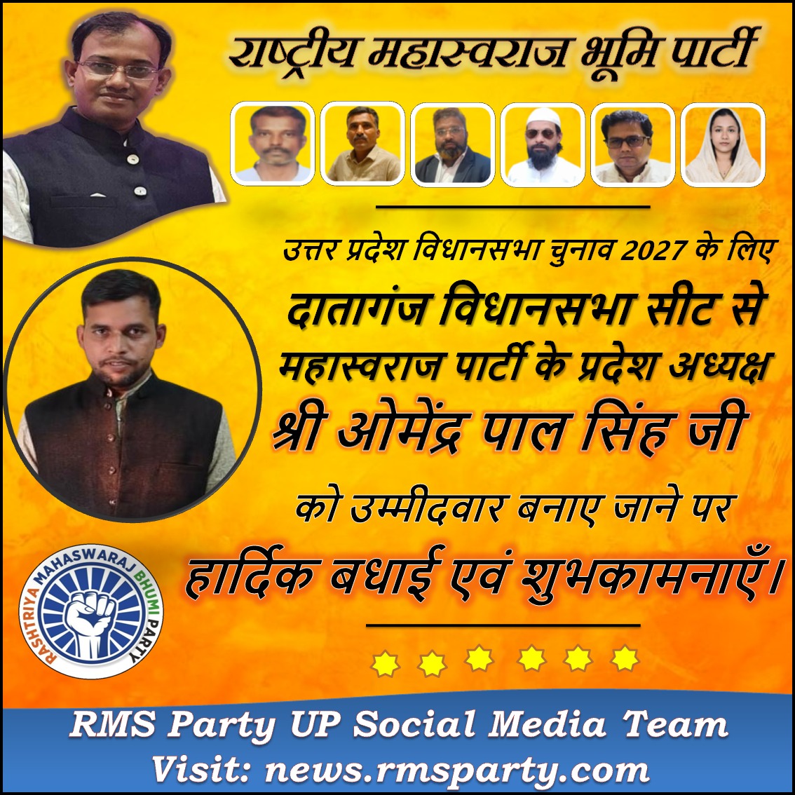उत्तर प्रदेश विधानसभा चुनाव 2027 को लेकर राष्ट्रीय महास्वराज भूमि पार्टी ने दातागंज विधानसभा सीट…